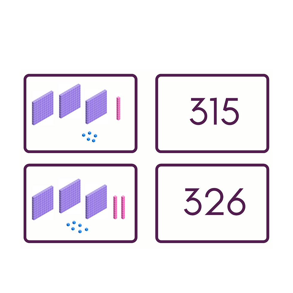 Place Value Matching Cards - Hundreds, Tens and Ones (Purple, Pink and Blue)